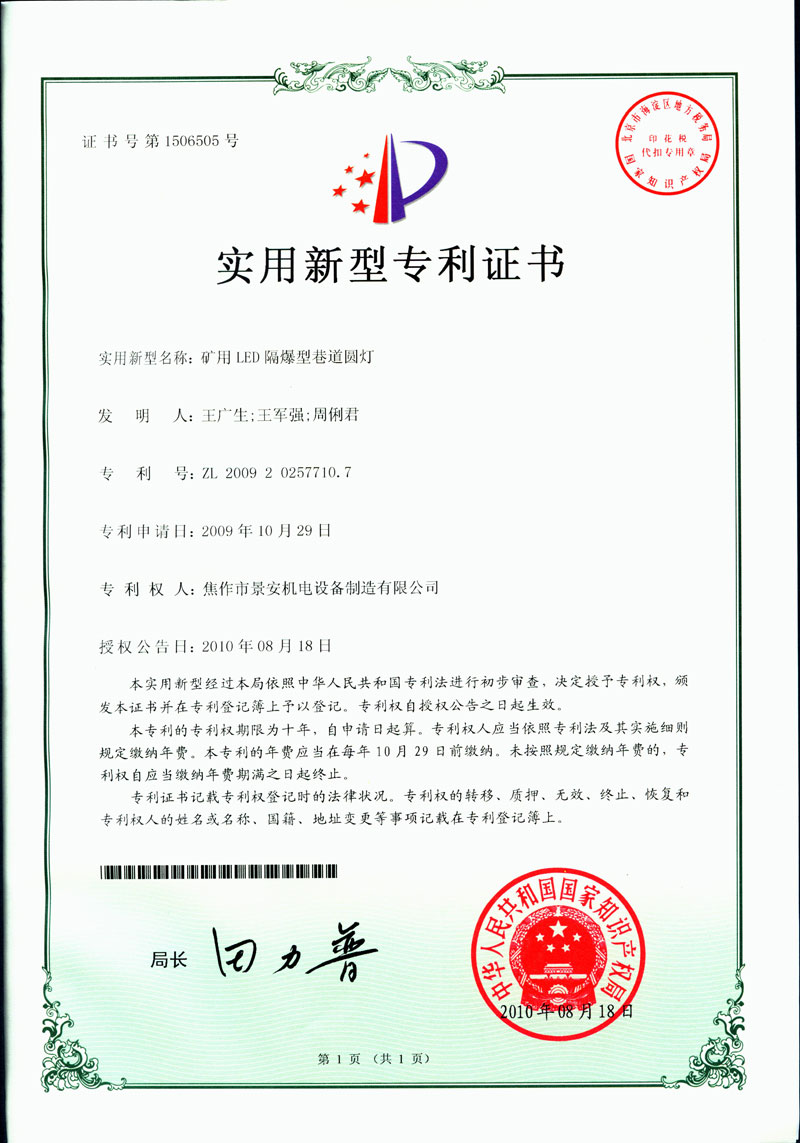 焦作景安公司始終堅持“以科技為先導(dǎo),以市場為導(dǎo)向”的發(fā)展戰(zhàn)略,不斷進(jìn)行新產(chǎn)品的研制和開發(fā),在國家“六五”到“九五”期間,承擔(dān)和參與了國家多項(xiàng)科技攻關(guān)項(xiàng)目,產(chǎn)品的技術(shù)和質(zhì)量一直處于全國同行業(yè)領(lǐng)先位置。并被中國電器工業(yè)協(xié)會評定為“質(zhì)量可信產(chǎn)品”。特別是在礦用防爆燈領(lǐng)域,礦用隔爆型半導(dǎo)體(LED)照明燈具,2008年列入國家火炬計劃,獲2009年河南省工業(yè)和信息化廳的科技成果二等獎,并擁有多項(xiàng)國家專利。 |
